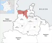 - Distrito de Vouziers[4](8 cantones - subprefectura: Vouziers):