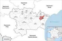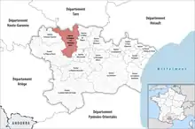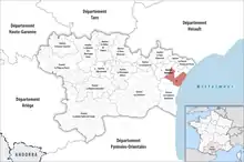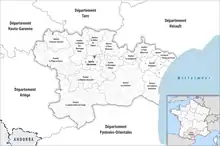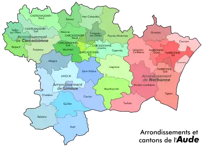 - Distrito de Carcasona[1](18 cantones - prefectura: Carcasona):