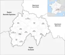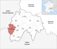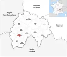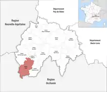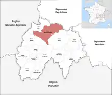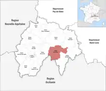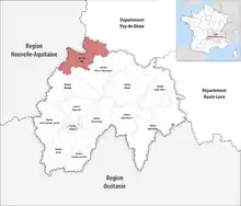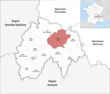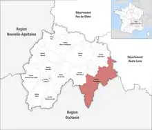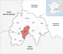 - Distrito de Mauriac[2](6 cantones - subprefectura: Mauriac):