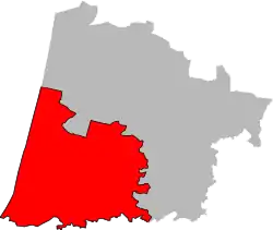- Distrito de Dax[1](13 cantones - subprefectura: Dax):