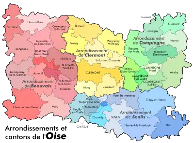 - Distrito de Compiègne[3](20 cantones - subprefectura: Compiègne):