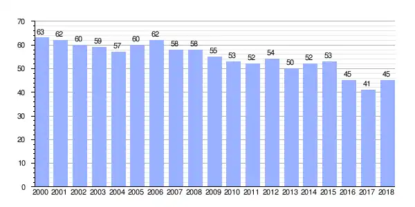 Gráfica de evolución demográfica de Canzobre entre 2000 y 2018 |