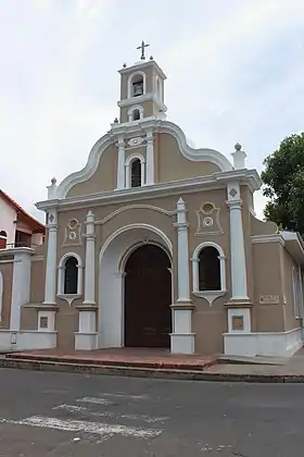 El terremoto en realidad destruyó la parte trasera de la iglesia pero el característico muro frontal quedó en pie. Posteriormente se reconstruyó el templo teniendo de base el antiguo frontis. Es de notar que la capilla anteriormente estaba ubicada en la misma avenida pero en la esquina de la calle 14, igualmente al lado de la Biblioteca Julio Pérez Ferrero. Antiguamente se llamaba Iglesia San Juan de Dios.[1]