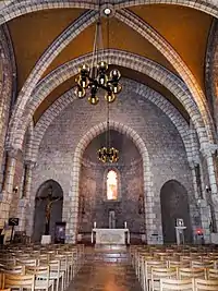 En el nicho que preside el ábside se coloca una imagen de la Virgen María que es una réplica de Notre Dame du Salut.