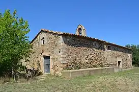 El edificio ha sido muy transformado a lo largo del tiempo. Actualmente presenta planta rectangular, paredes portantes de piedra morterada con sillares de piedra bien cortada en las esquinas y cubierta a dos vertientes. Se conservan los pilares de piedra morterada que sostenían la cubierta de vigas de madera del porche de entrada. Destacamos la puerta con dintel horizontal y moldura igual a la de las jambas. También es notable una ventana conopial con decoraciones esculpidas con forma de estrellas lobuladas de raíz románica. Se conserva la espadaña con la campana de la capilla.[2]
