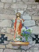 En lo relativo a los muros de la nave, en el muro del evangelio, junto a una pila bautismal labrada en piedra, se encuentra una talla articulada de Cristo crucificado, mientras que en el muro de la epístola, frente a la imagen de Cristo y en una hornacina pétrea con forma de arco de medio punto, se hallan las imágenes de San Roque (de mayor tamaño que la del retablo), la Virgen del Carmen (imagen de vestir) y Santa Lucía de Siracusa, destacando otras dos tallas cerca de la entrada: una imagen de vestir de la Virgen del Rosario situada en una repisa ubicada sobre una puerta en el muro del evangelio y, frente a ella, en el muro de la epístola, una estatua de escaso valor artístico del Sagrado Corazón de Jesús.