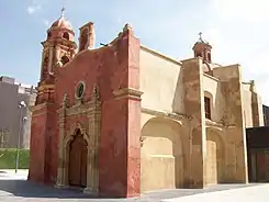 Es un templo de planta de cruz latina con una sola nave y cúpula en el crucero. Su fachada principal mira hacia el norte y posee una sola torre con campanario en el lado oriental, cuya cúpula estuvo recubierta por azulejos. Por los costados este y oeste, la iglesia está reforzada por contrafuertes. Fue construida con piedra volcánica y en su erección participaron artistas indígenas.