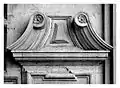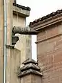 La espadaña de dos ojos de medio punto está decorada con pilastras cajeadas y frontón triangular, se encuentra en el remate de la fachada norte o septentrional. En esta fachada se puede observar un gran ventanal, sobre la puerta de entrada, que se asocia a parte de la estructura que debería tener la tribuna unida a la vivienda y que nunca fue construida.[16] Existen gárgolas de animales fantásticos en cada esquina de la cubierta del edificio.[17]