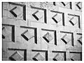 En la construcción de los muros se combina la piedra gris de tipo caliza y procedente de Cornellana y la ferruginosa, con ellas se construyen unos casetones rectangulares en resalte con rombos en forma de puntas de diamante. Sobre las pilastras se encuentra un entablamento que recorre todo el perímetro de sus muros y en el que hay un friso con ornamentos vegetales.