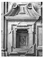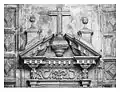 La sacristía ubicada detrás del muro donde debía encontrarse el retablo mayor, está realizada con gran detalle de ornamentos, el mueble cajonera está incrustado dentro de un nicho avenerado flanqueado por pilastras estriadas con un frontón superior. Enfrente se encuentra otra hornacina avenarada que acoge el aguamanil con las pilastras cajeadas y columnillas exentas, también tiene un entablamento sobre ménsulas encima del cual hay una cruz como remate. El friso se alterna con triglifos y metopas decorados con rosetas.[14]