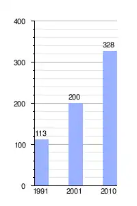 Gráfica de evolución demográfica de Capilla del Carmen entre 1991 y 2010 |