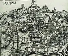 Aunque pueden verse formas tempranas de capitalismo comercial en la vida cotidiana economía de la Antigua Roma (desde el siglo II a. C.) o en la economía del islam medieval (desde el siglo IX d. C.);[1] lo que resultó clave fue el desarrollo de una burguesía de artesanos y mercaderes en las ciudades medievales de Europa occidental y central (ciudades-Estado italianas, alemanas, flamencas, hanseáticas, etc. -Henri Pirenne las denominaba "islas en el océano feudal"-), precariamente en la Alta Edad Media y con gran vigor a partir de la llamada revolución del siglo XII,[2][3][4] que con el tiempo, incluso beneficiándose de algunas de las consecuencias de la crisis del siglo XIV, se convirtió en una fuerza social y económica suficiente como para ser tenida en cuenta en el propio gobierno de las ciudades (primeras "revoluciones burguesas", patriciado urbano) y en el caso de las monarquías feudales que se acabaron convirtiendo en monarquías autoritarias y primeros Estados-nación, en uno de sus principales soportes (mediante el pago de impuestos a las nacientes Haciendas reales, su intervención como funcionarios o letrados en las nacientes burocracias y su representación política en los parlamentos medievales[5] -Cortes de los reinos hispano-cristianos, Parlamento inglés, Estados Generales de Francia-).[6]