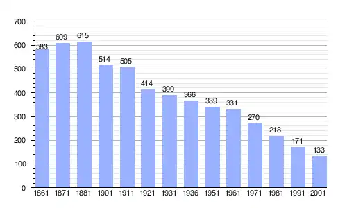 Gráfica de evolución demográfica de Caprauna entre 1861 y 2001 |