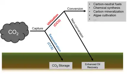 La captura y utilización de carbono (CCU por sus siglas en inglés) es el proceso de capturar dióxido de carbono (CO2) y darle un uso diferente al almacenamiento.[1] Es por tanto distinta de la captura y almacenamiento de carbono (CCS por sus siglas en inglés), a veces denominada "secuestro del carbono".