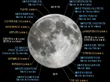 La cara visible de la luna está cubierta por grandes áreas oscuras que los primeros astrónomos que la cartografiaron en el siglo XVII (principalmente Giovanni Riccioli y Francesco Maria Grimaldi) pensaron que se trataban de mares.[1] A pesar de que posteriormente se descubrió que la luna no tenía mares, el término «mare» sigue siendo utilizado.[1] En contraposición, las regiones con color más claro son denominadas «terrae», más comúnmente referidas como tierras altas.