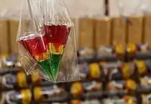 Es habitual que tengan envoltorios de colores llamativos, e incluso el propio caramelo puede ser de muchos colores. También se usan otras técnicas para hacerlos diferentes del resto, por ejemplo, hacer que piquen, que dentro tengan chicle, o que incluyan un palo para cogerlos. Es curioso señalar que en países como Venezuela, en este caso recibe el nombre de "chupeta" y en casos como Perú y Bolivia reciben el nombre de "chupete", mientras que en Colombia se le denomina popularmente colombina o bon bon bum; este último nombre debido a la marca de caramelos colombiana. En los Estados Unidos de Norteamérica reciben el nombre de lollipop, también llamado así en ciertos países de Latinoamérica.