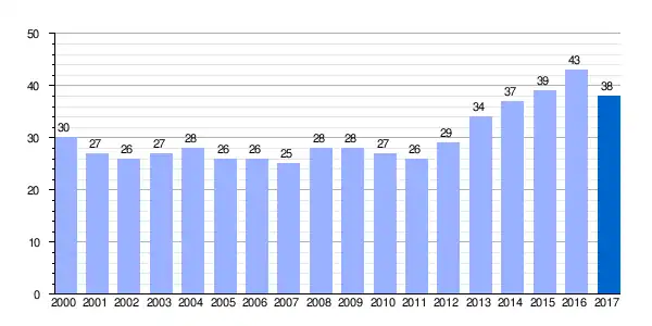 Gráfica de evolución demográfica de Caranca y Mioma[1] entre 2000 y 2017 |