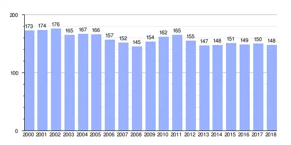Gráfica de evolución demográfica de Carantoña[4] entre 2000 y 2018 |