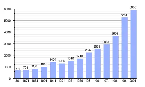 Gráfica de evolución demográfica de Carapelle entre 1861 y 2001 |