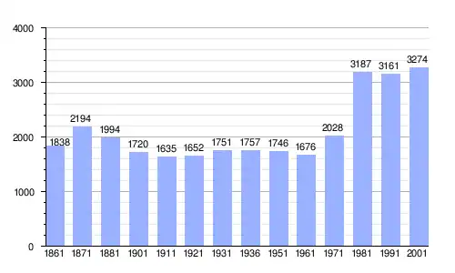 Gráfica de evolución demográfica de Carasco entre 1861 y 2001 |