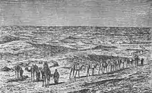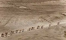Una caravana de camellos o tren de camellos, es una serie de camellos que transportan pasajeros y mercancías en un servicio regular o semi-regular entre puntos. Aunque raramente viajaban más rápido que la velocidad humana, durante siglos la capacidad de los camellos de soportar condiciones duras les hizo ideales para la comunicación y el comercio en las zonas desérticas del norte de África y la península Arábiga . Los trenes de camellos también se utilizaron con moderación en otros lugares del mundo. Desde principios del siglo XX han sido sustituidos en gran parte por vehículos motorizados o tráfico aéreo. [1]