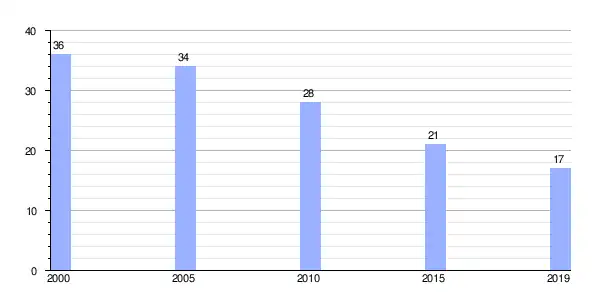 Gráfica de evolución demográfica de Carballal entre 2000 y 2019 |