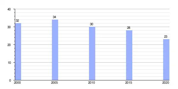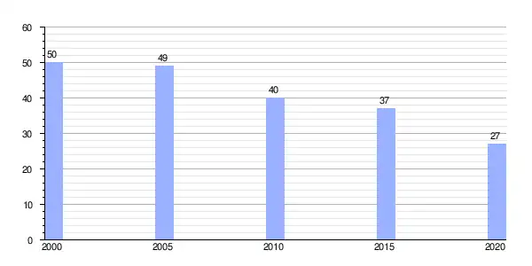 Gráfica de evolución demográfica de Carballal (parroquia) entre 2000 y 2020 |