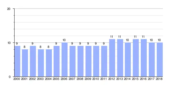 Gráfica de evolución demográfica de Carballeira entre 2000 y 2018 |