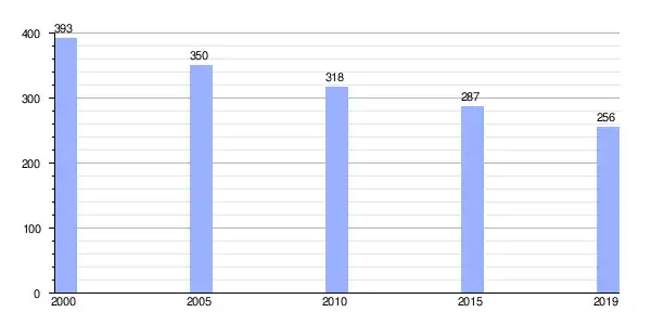 Gráfica de evolución demográfica de Carballido entre 2000 y 2019 |