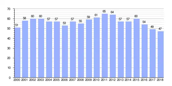 Gráfica de evolución demográfica de Carballido entre 2000 y 2018 |
