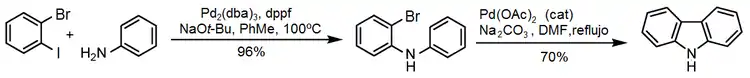 Iwaki y colaboradores reportaron un método para sintetizar carbazoles y β-carbolinas:[13]