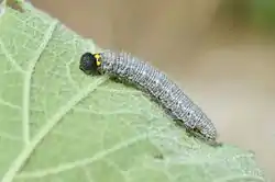 ![]() Oruga sobre Alcea rosea. | ||