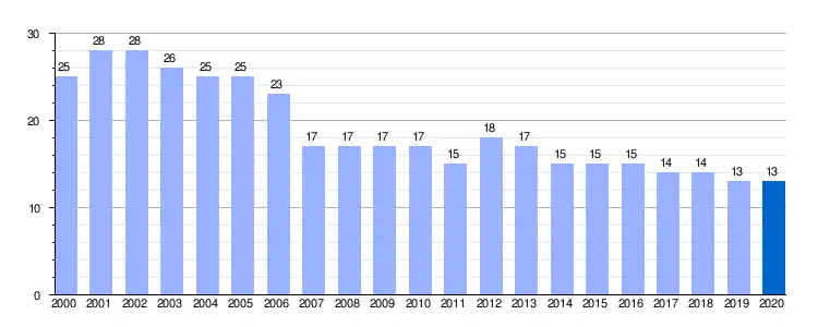 187 | 169 | 86 | 25 | 28 | 28 | 26 | 25 | 25 | 23 | 17 | 17 | 17 | 17 | 15 |