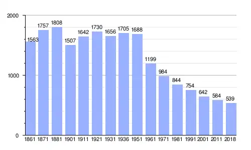 Gráfica de evolución demográfica de Careggine entre 1861 y 2018 |