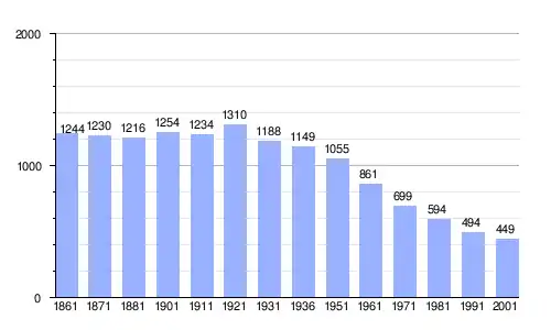 Gráfica de evolución demográfica de Carezzano entre 1861 y 2001 |