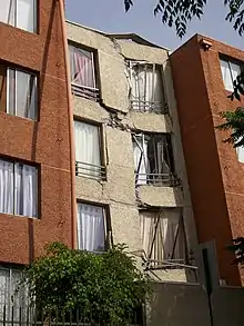 - La distribución de masas del edificio. Al ser un sismo en esencia un movimiento, los daños en el edificio se forman debido a la inercia que intenta mantener al edificio en su estado original. La inercia depende directamente de la masa, por lo que a mayor masa mayores cargas sísmicas
