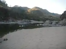 Río Goascorán en su sección "La Estrechura" que cruza frente al pueblo de Caridad