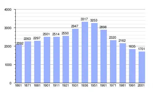 Gráfica de evolución demográfica de Carife entre 1861 y 2001 |