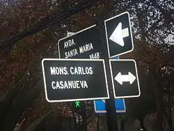 El Estadio San Carlos de Apoquindo del Club Deportivo Universidad Católica recibe su nombre en honor al rector Casanueva, al igual que dos calles en la ciudad de Santiago de Chile ubicadas en las comunas de Macul y Providencia, ambas contiguas a campus de la Pontificia Universidad Católica de Chile.