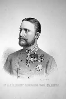 Se casó en Roma el 19 de septiembre de 1861 con su prima la princesa María Inmaculada de Borbón-Dos Sicilias (Nápoles, 14 de abril de 1844 - Viena, 18 de febrero de 1899), hija de su tío materno Fernando II de las Dos Sicilias y su segunda esposa, María Teresa de Austria.