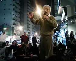 ![]() Carlos Savransky durante una clase pública en Av. Corrientes y Ángel Gallardo (Ciudad de Buenos Aires, 17 de abril de 2008) | ||