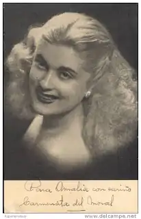 Carmen del Moral fue una cantante y actriz que nació en Buenos Aires, Argentina el 12 de julio de 1920 y falleció en San Miguel, provincia de Buenos Aires, Argentina el 6 de diciembre de 1991. Poseía una envidiable y afinada voz, así como una capacidad artística que la destacaron tanto en los escenarios teatrales como en el cine y la radio.