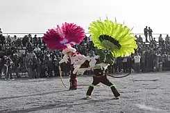 - Los Bazarios: Su vestuario es más sencillo que el de los Charros y está compuesto por una máscara de madera con rasgos europeos, chaleco y pantalón negro, camisa blanca, corbata, guantes de piel, zapatos negros, cinturón, listones verde y rojo y un sombrero estilo texano con tres plumas de avestruz.