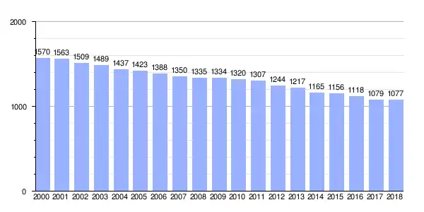 Gráfica de evolución demográfica de Carnota entre 2000 y 2018 |