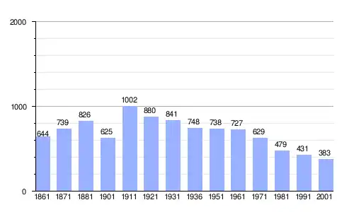 Gráfica de evolución demográfica de Carona entre 1861 y 2001 |