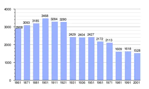 Gráfica de evolución demográfica de Carovilli entre 1861 y 2001 |