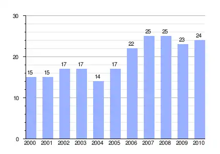 Población de derecho (2000-2010) según los censos de población del INE a 1 de enero de cada año.[4] |
