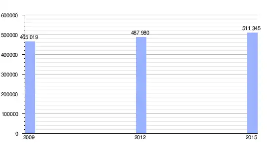 Gráfica de evolución demográfica de Carrefour entre 2009 y 2015 |