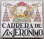 El Madrid de los Austrias urbanizó antiguos caminos como elegantes carreras,[10] la más conocida y que aún conserva tal denominación es la carrera de San Jerónimo, camino de carros que unía la villa medieval con la feraz vega del prado de los monjes jerónimos, vía de la que ya en el siglo xvi se documentan las primeras edificaciones y la construcción de una alcantarilla en 1618.[11] La madrileña carrera de san Jerónimo tuvo como vecino de paso a Francisco de Goya, que entre 1778 y 1779 vivió en una casa de la marquesa de Campollano.[12][13][14]