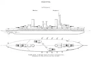 Doce 12-inch/45 cal | Armstrong Whitworth | 17 de abril de 1907 | 10 de septiembre de 1908 | Enero de 1910 | Desguazado a inicios de 1954 |